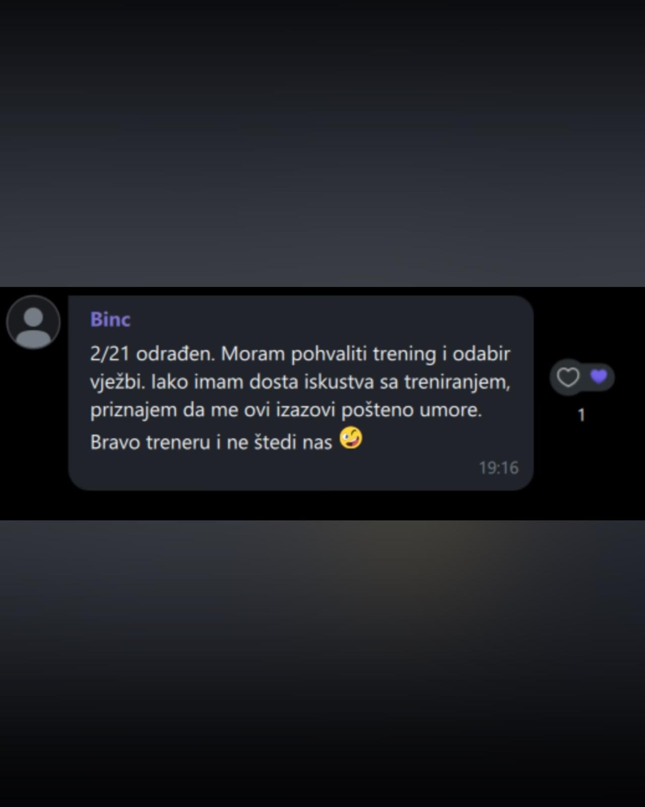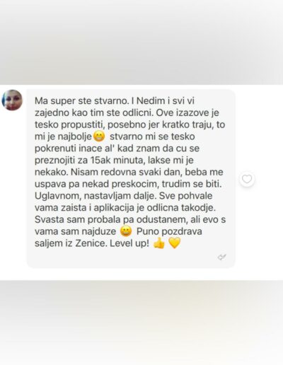 Jer ti ne treba još jedan težak program. Treba ti mali korak, podrška i osjećaj da možeš. Zato je izazov napravljen da traje 21 dan, taman toliko da osjetiš promjenu i da vidiš da nisi sam/a.